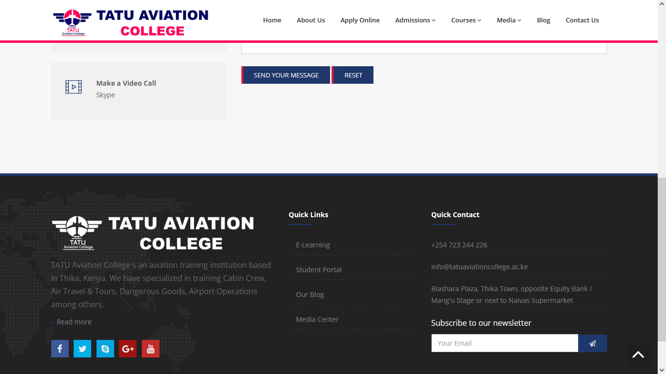 TATU Aviation College is an aviation training institution based in Thika, Kenya. We have specialized in training Cabin Crew, Air Travel & Tours, Dangerous Goods, Airport Operations among others.